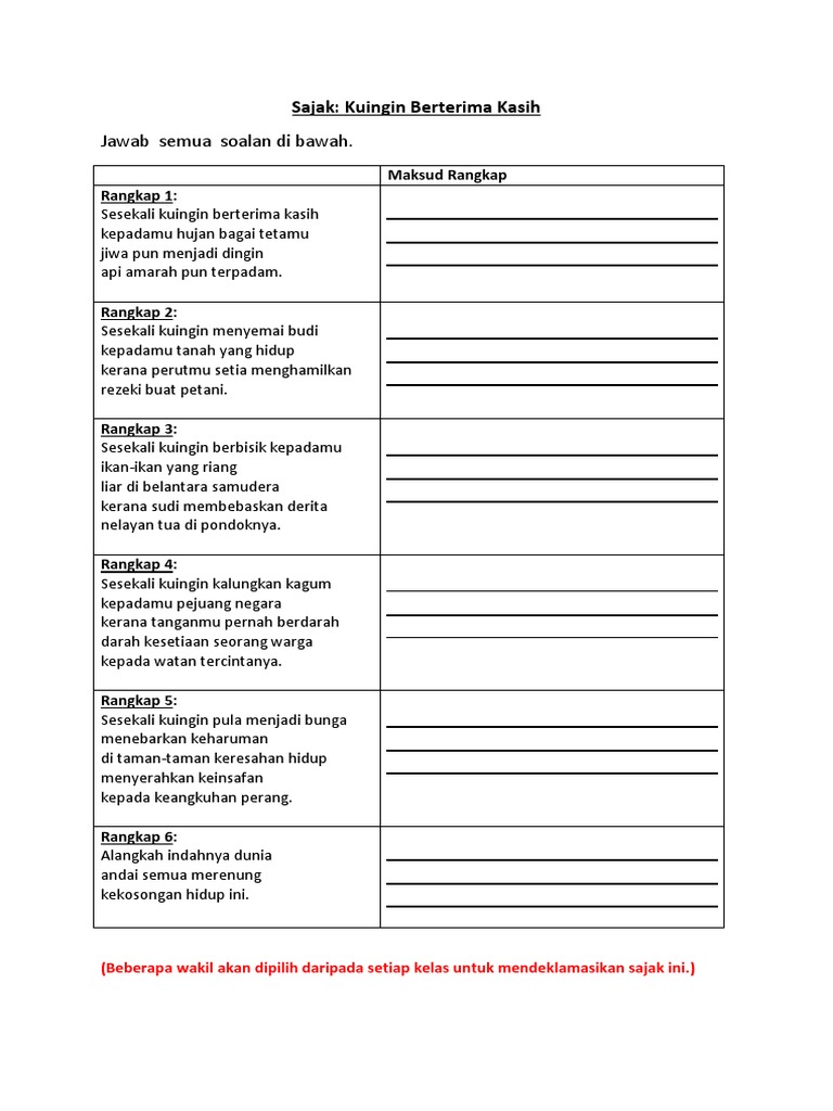 Latihan Sajak Kuingin Berterima Kasih Pdf